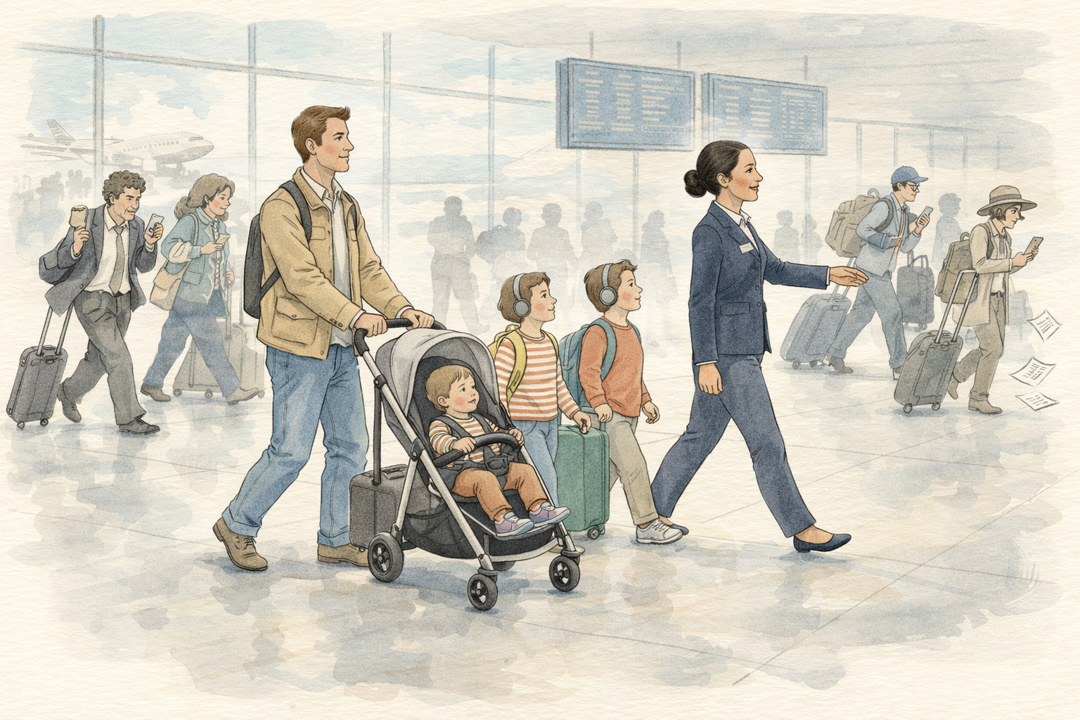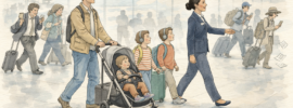 Traveling with toddlers is one. Strollers, diaper bags, and unpredictable moods make airports particularly challenging. Another is traveling alone with multiple kids. One adult managing everything benefits from extra hands and guidance.