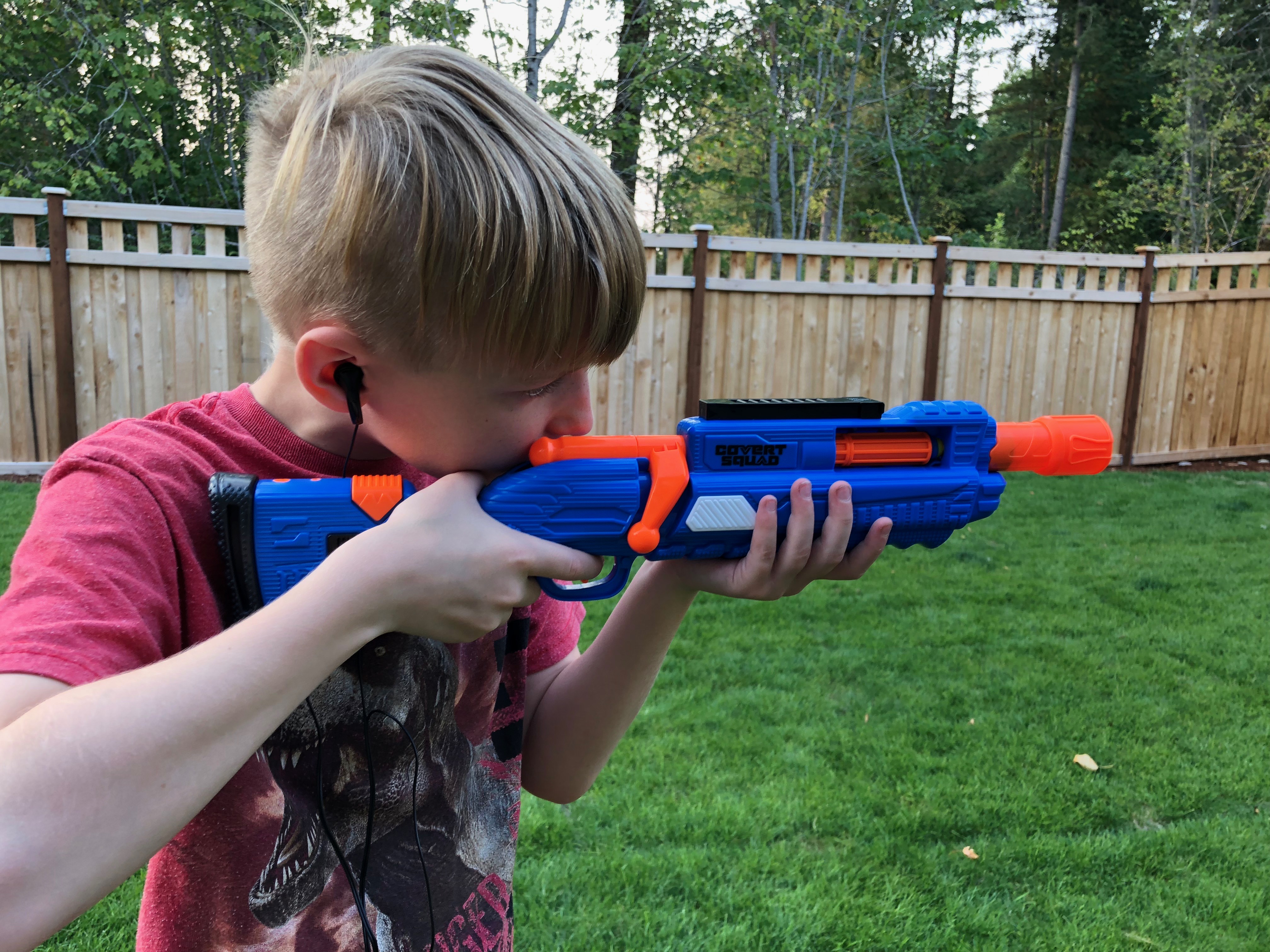 Whenever my son has friends at the house, it is just a matter of time before he breaks out the box of dart blasters. The kids scatter across the house firing foam darts around corners and from the top of the stairs. The dog goes crazy. The darts get everywhere. And they always have a great time.