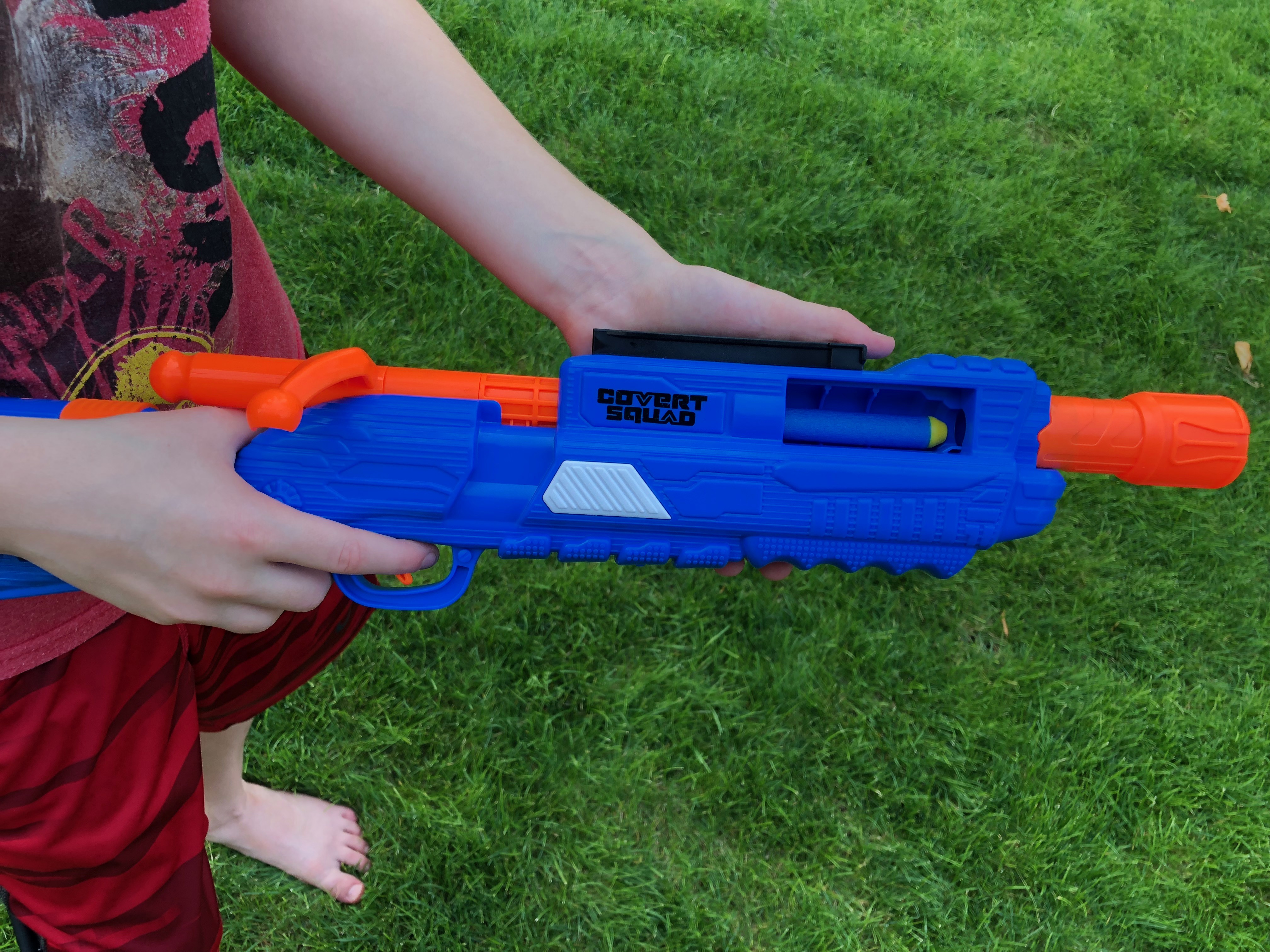 My son loved that the dart blaster has a realistic bolt loading action. You drop in the foam dart, pull back the lever, and then you can fire up to 100 feet away. We were both super impressed with how far the Covert Squad dart blasters could fire. We have a large backyard and the darts easily traveled the length of the yard with plenty of speed to hit the target. The set of two dart blasters comes with eight long distance darts. We have a supply of foam darts from other toys that worked as well.