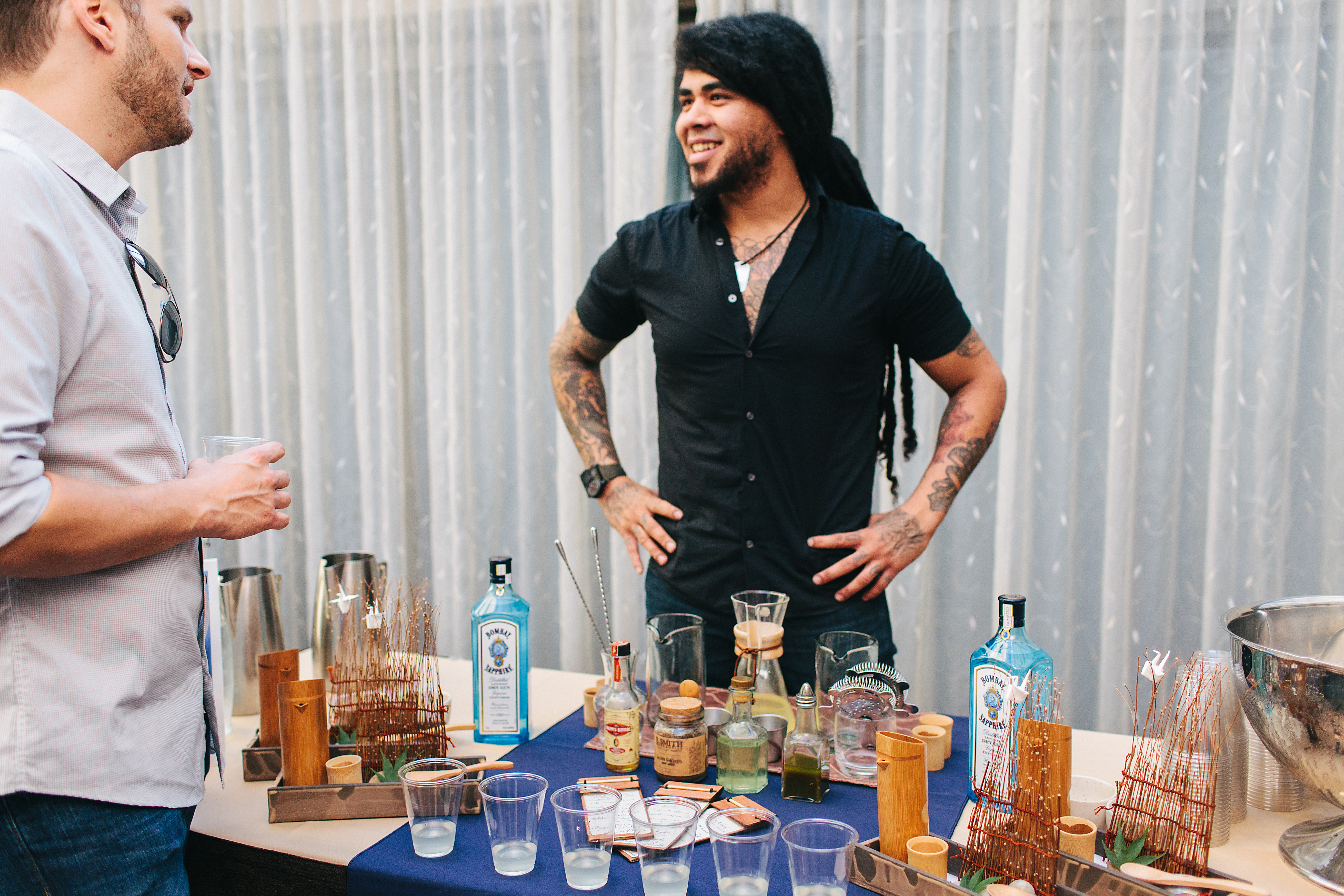 Nik’s winning drink was the named the “NAKA NIWA” and made with Acid Fire Ginger Shrub and Fresh Tomato water, in addition to Bombay Sapphire gin. It was interesting to sample each of the drinks dreamed up by the mixologists. Even though Bombay Sapphire gin was a common ingredient, each had a unique flavor that was complimented by each bartender’s special presentation.