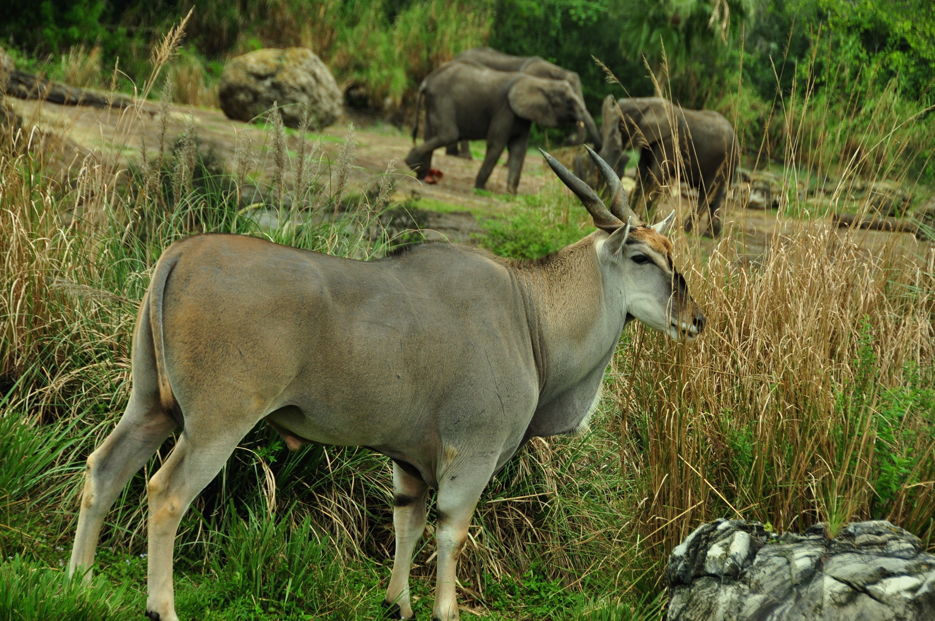 The Savor the Savanna tour starts by taking the same route as the regular Kilimanjaro Safaris attraction. The big difference is that your safari vehicle can pull over to the side and stop for a while, whereas the regular safari vehicles have to constantly move along the route. At one point, we stopped for 10 – 15 minutes to watch the giraffes and an animal caretaker came by to answer questions about the animals.