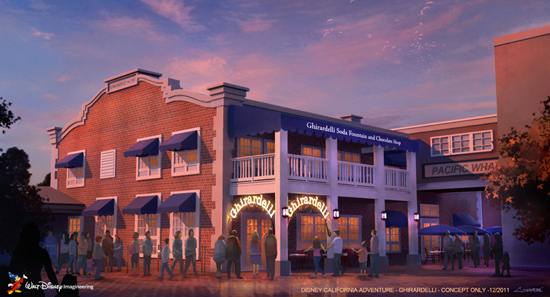 There soon will be a new place to satisfy your sweet tooth at the Disneyland Resort. In late spring 2012, a new Ghirardelli location will open at the Pacific Wharf area, inside Disney California Adventure park.