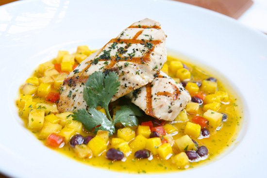 - Grilled Jamaican Jerked King Fish with a Tropical Salsa of Pineapple, Mango, Black Beans, and Lime ($32)
