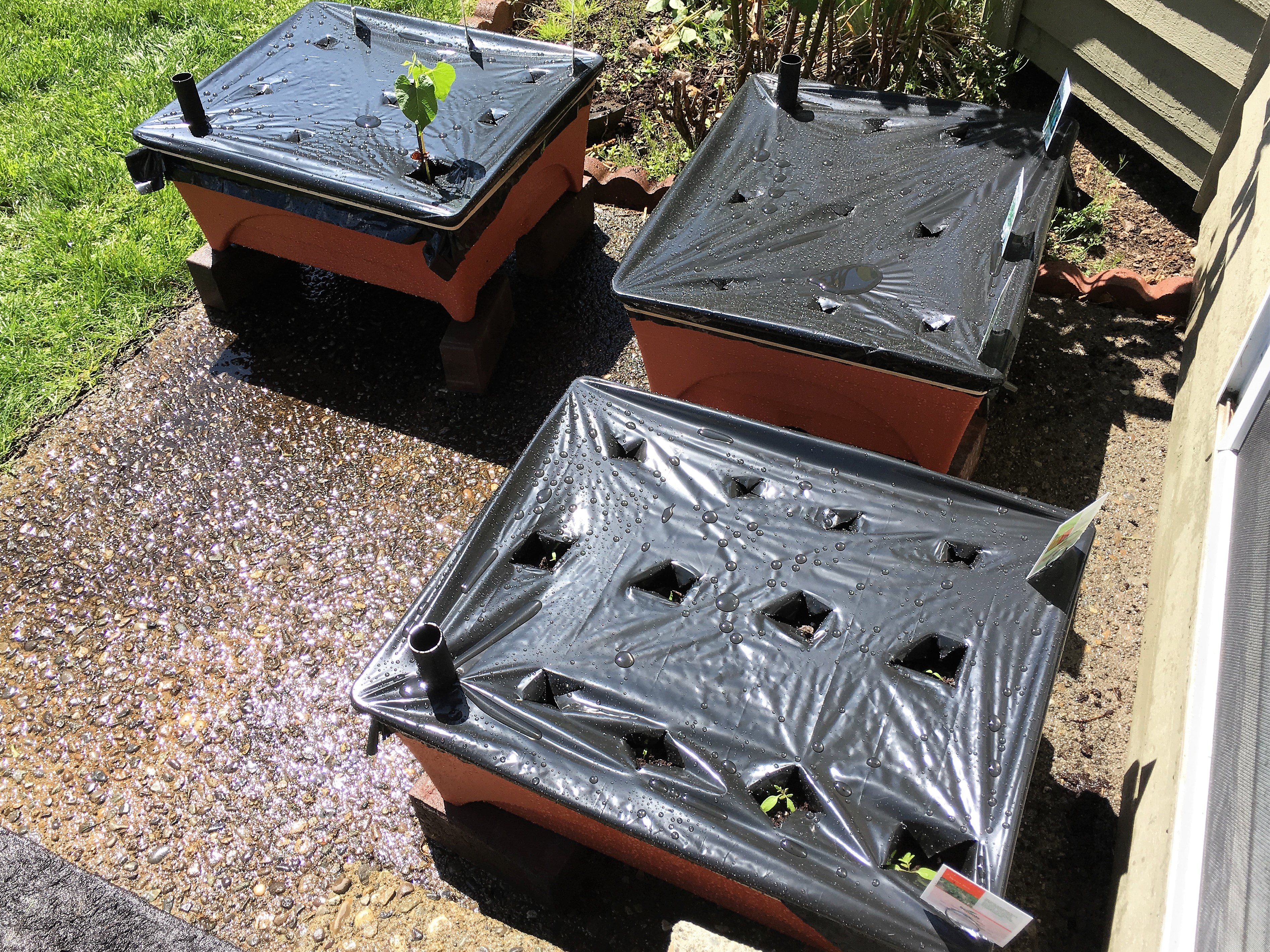 The weather has been our biggest obstacle this year. According to the national weather service, Seattle measured 44.7 inches (114 centimeters) of rain between October and April, making it the wettest such period since records began in 1895. The sun finally appeared over the last few weeks, which gave us a chance to start our seedlings and to get the containers set up outside.