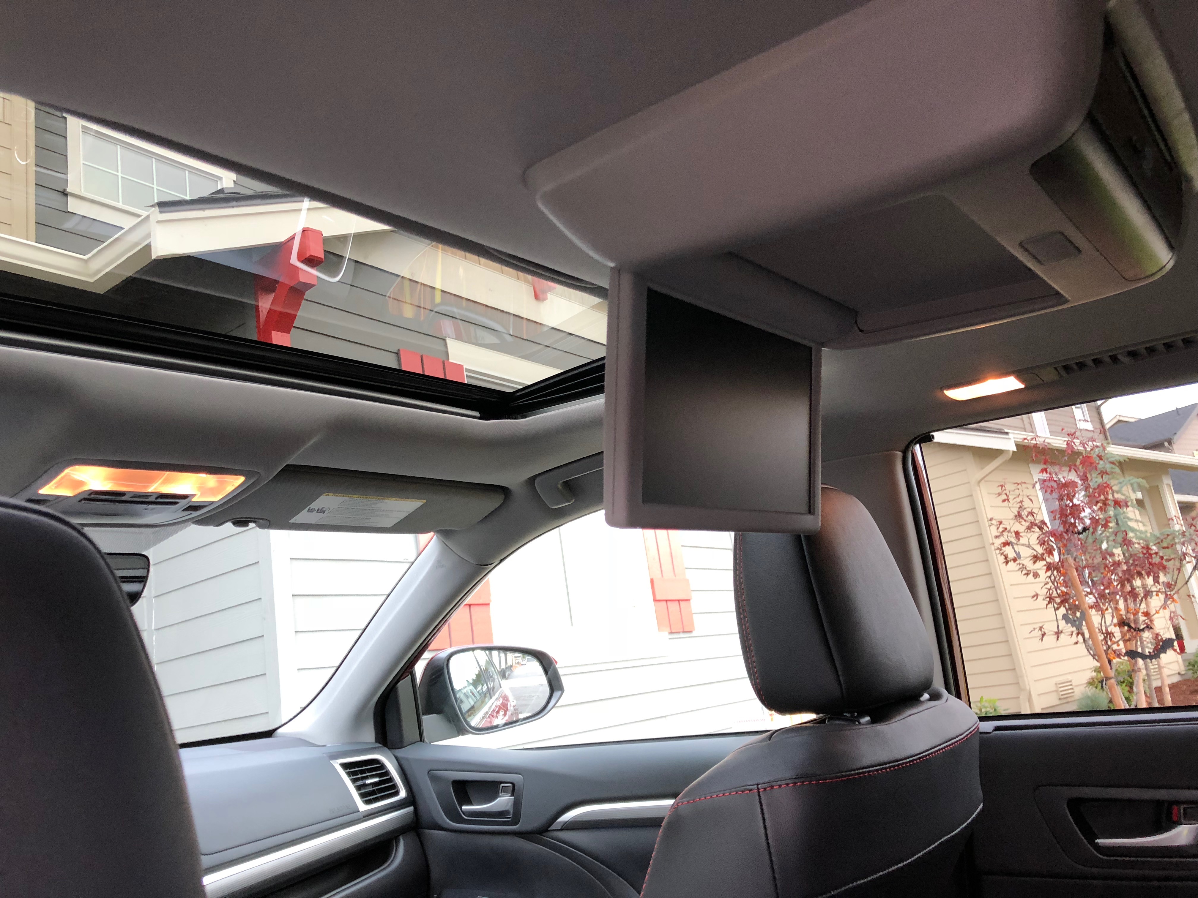 Our family’s pumpkin patch adventure was over the weekend, and then the Toyota Highlander became my best friend for my workday commute. It was a treat to have a new car for the lengthy drive and I made really good use of the sound system. The Highlander was fun to drive and I liked the stylish look of the interior with the red stitching. I never felt like I was driving a family car. It felt like much more than that with the red paint job, V6 engine, and 19″ Black Alloy wheels.