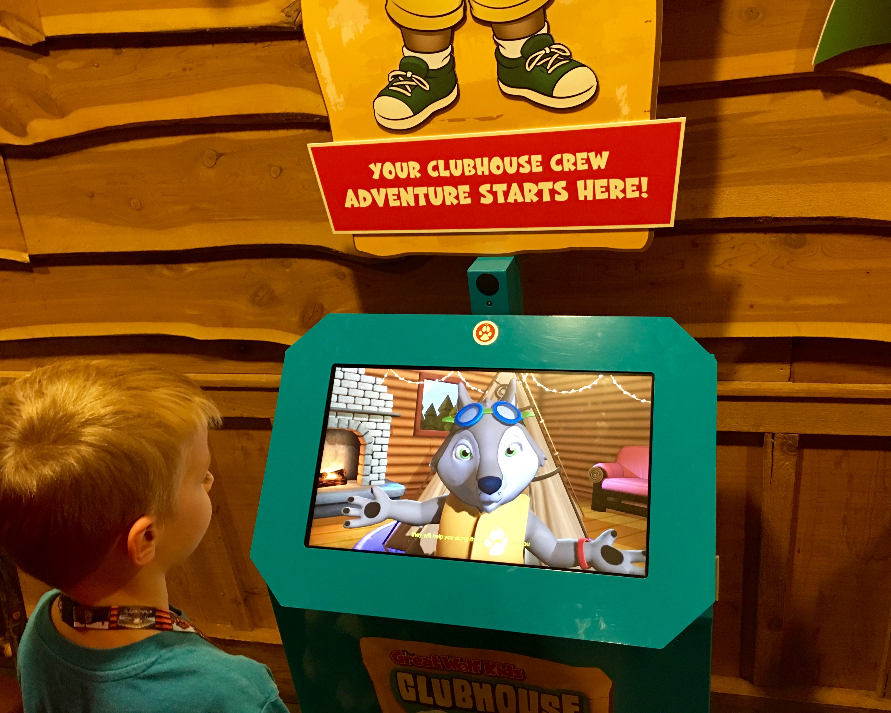 The themed rooms give your child their own little cabin area inside your hotel room. We stayed in a Wolf Den Suite during our stay and there were unique surprises like a fish and a frog that would light up and sing when my son waved his MagiQuest wand at them. You can also activate these features if you have one of the stuffed animals from the Great Wolf Kids Store. There is an RFID chip in these toys that triggers the effects.