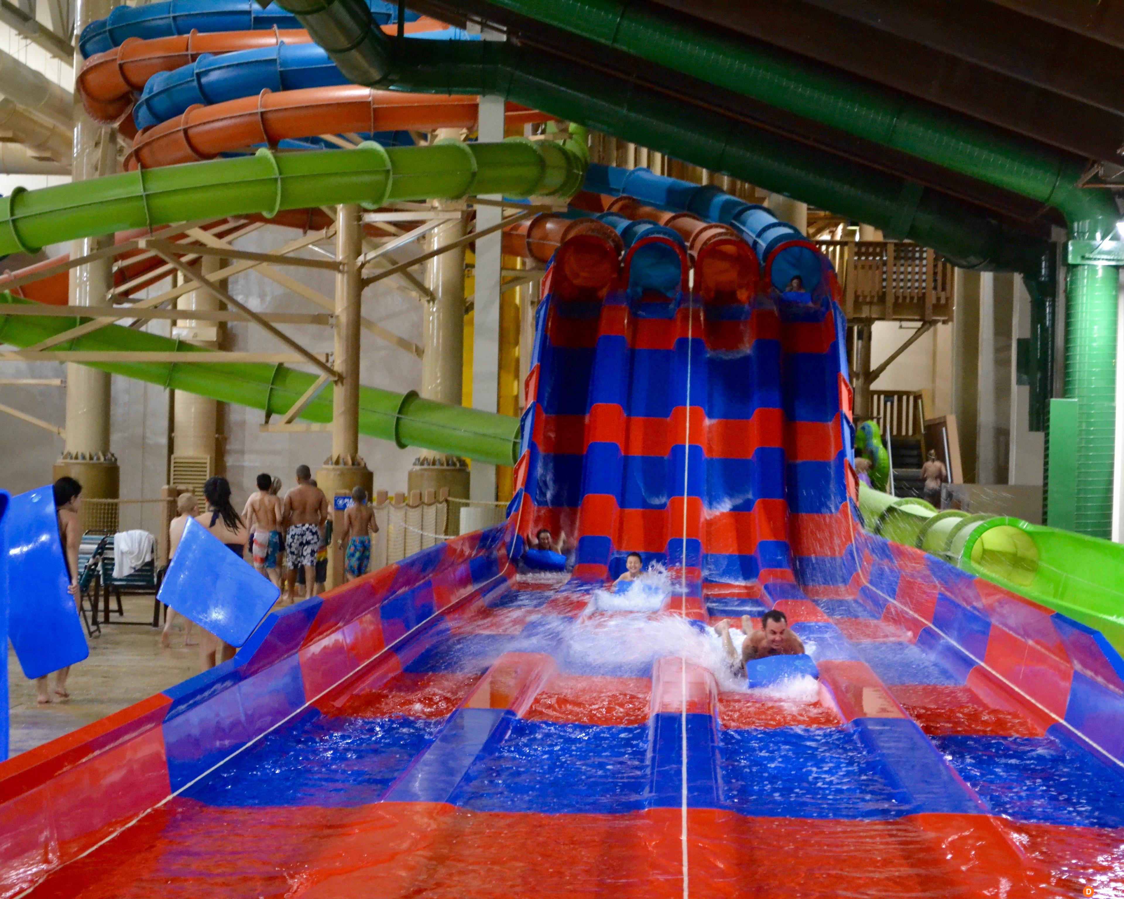 The water park is the heart of the resort, so I’ll cover that first. Great Wolf is one of the best venues for families because it has a mix of thrill rides, water play structures, and a shallow play area for small children. Everyone from toddlers to teenagers has something fun to do.
