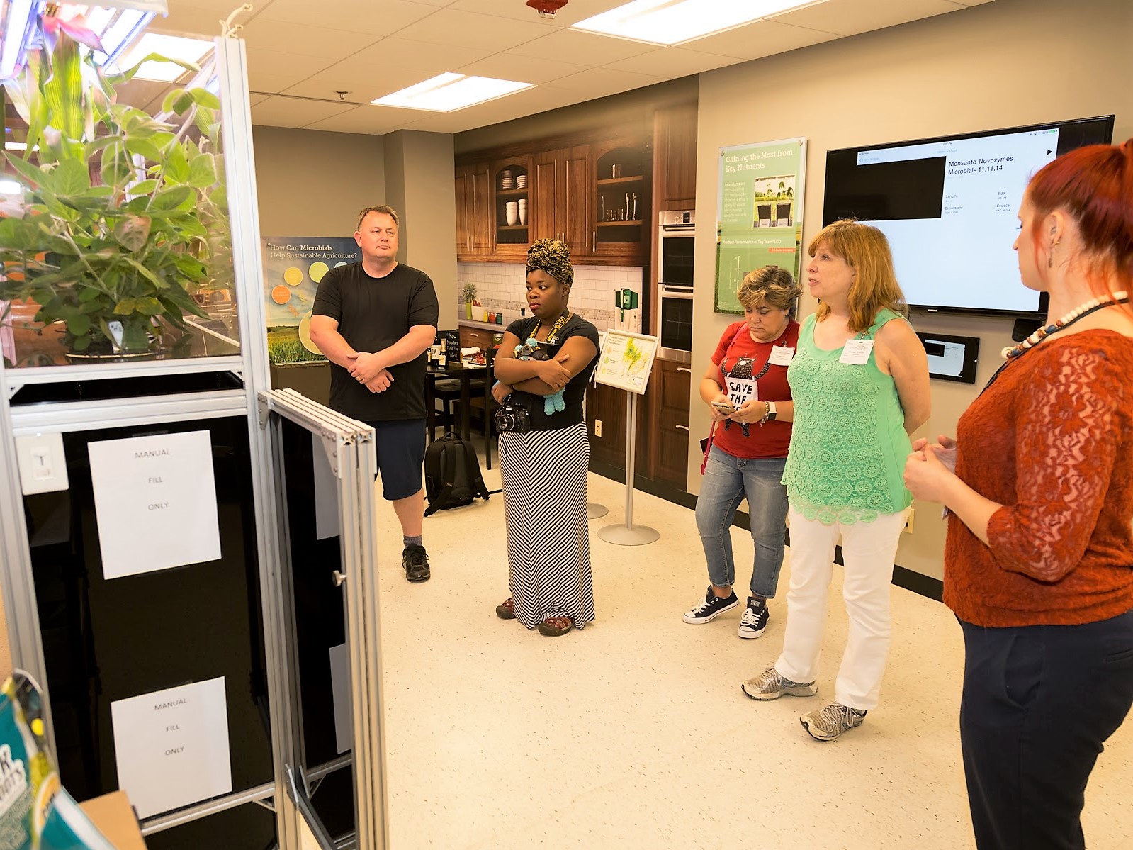 After spending time with the bees, we had a tour of the research areas and learned about modern agriculture. My family’s dairy and farm in Minnesota seemed low-tech compared with what we were shown in the research labs. We saw a demonstration of high tech sensors and automated tractors that would allow a farmer to control their farm from a smartphone. We also saw greenhouses filled with new varieties of crops that would give farmers better yields, and that were resistant to pests.