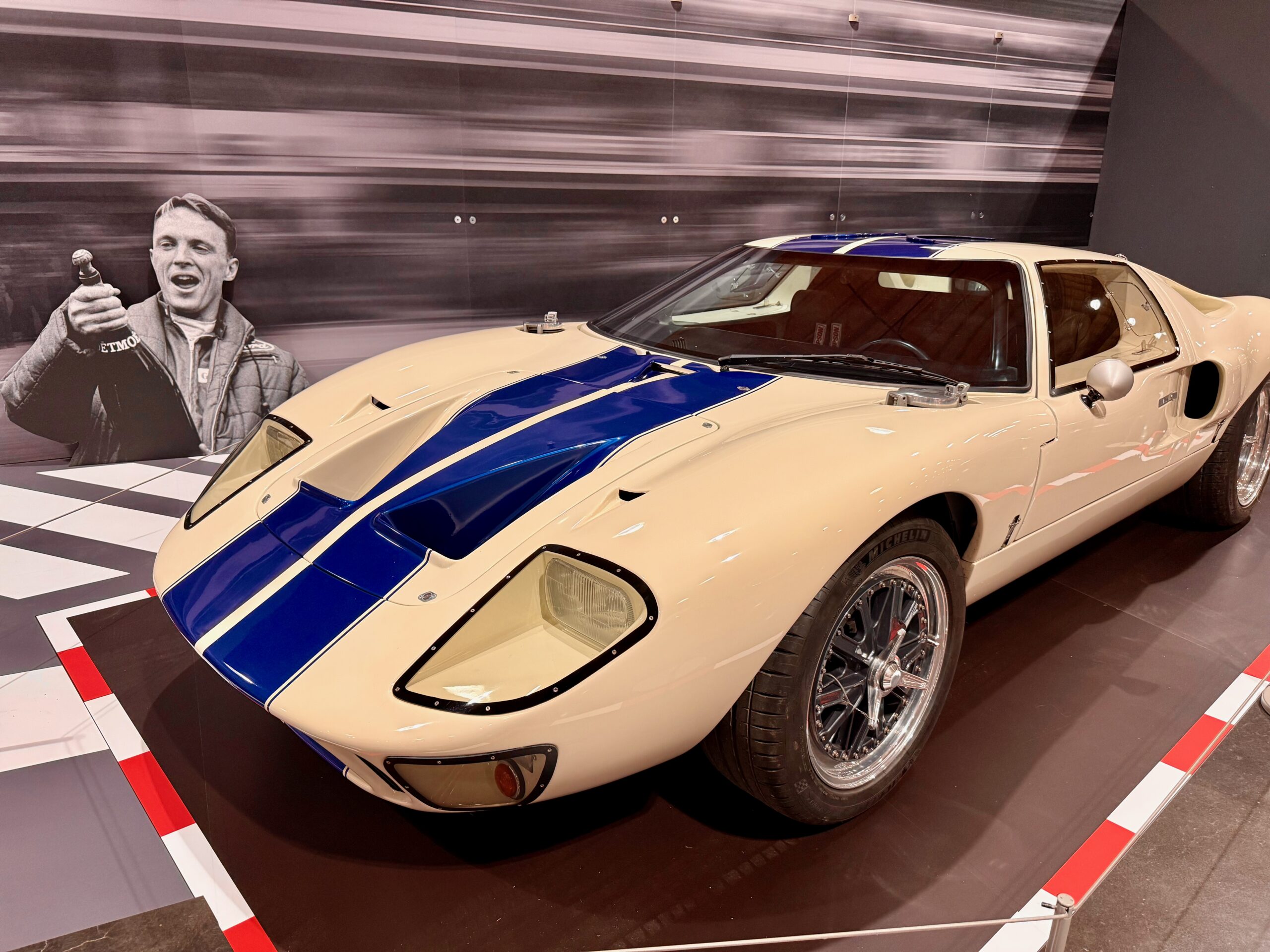 There are some moments of quiet beauty in the exhibit too. A 1960s Ford GT40, painted in Gulf Blue and Orange, sits in a corner like a museum piece in a cathedral. People don’t talk when they stand in front of it. They just look. And that, to me, is the exhibit’s greatest success: it balances the bombast of American horsepower with the stillness of admiration.