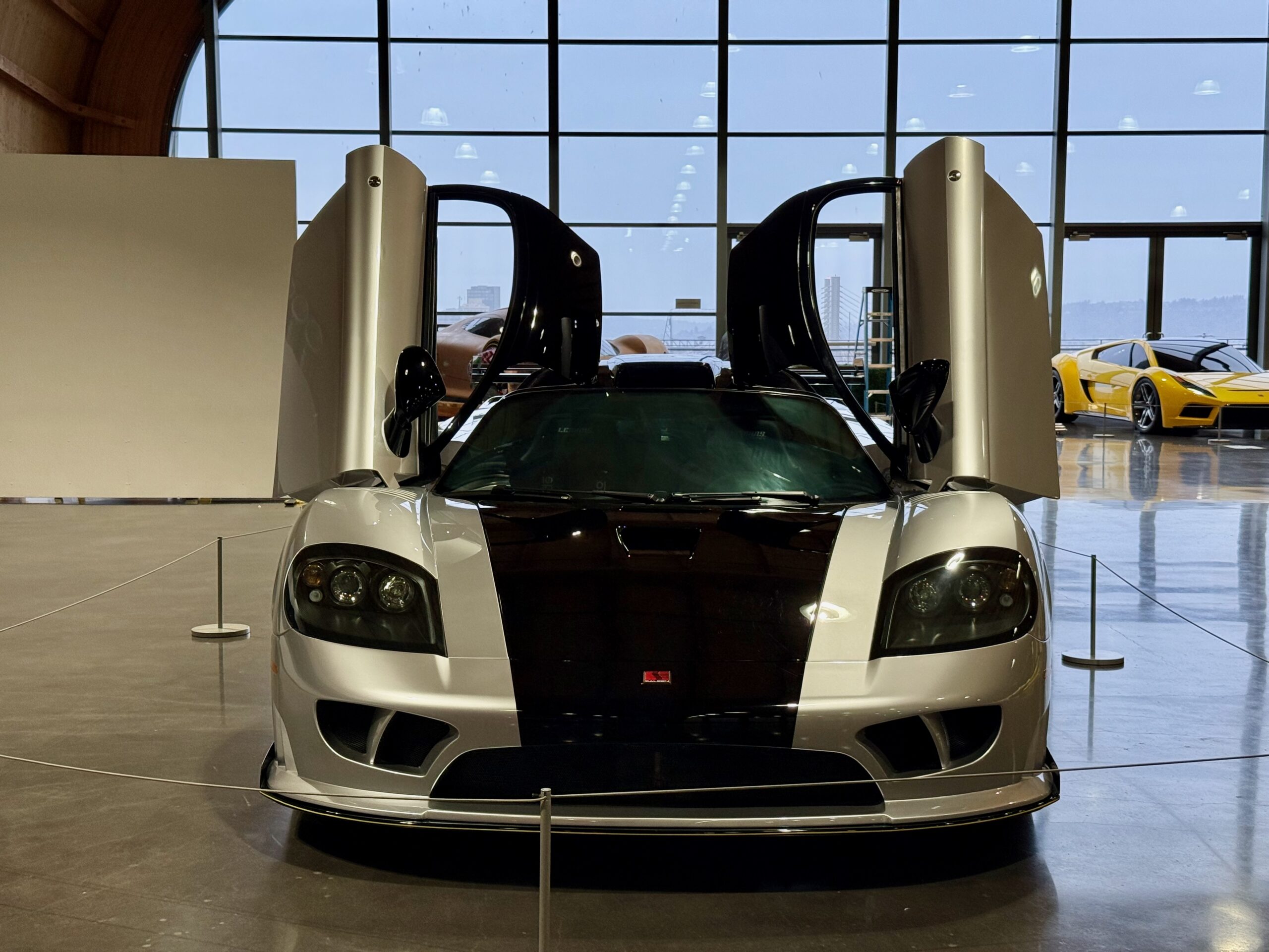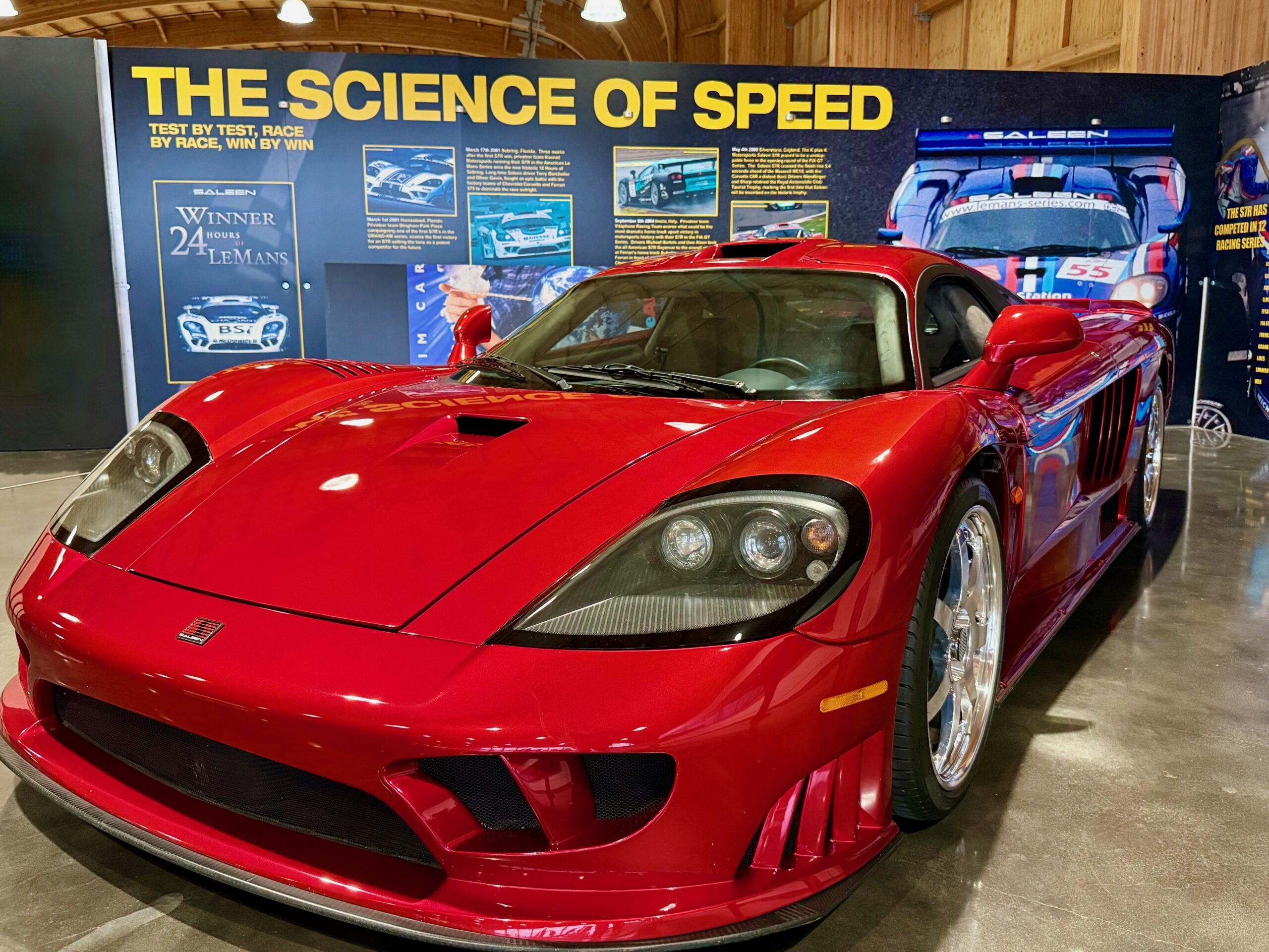 Saleen appears throughout the exhibit in quotes, videos, and signage that reads like snippets of an autobiography. His fingerprints are everywhere, especially on the Saleen S7, which still looks more spaceship than streetcar. The S7 is the kind of vehicle that feels like it shouldn’t exist outside a wind tunnel or a Bond movie. And yet here it is, quietly parked under dramatic lighting, radiating power and promise.
